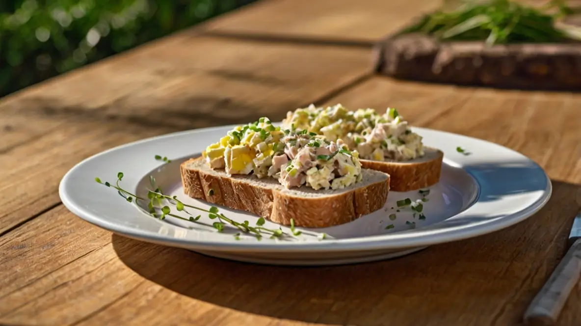 - W głębokim talerzu rozdrabniamy jajka widelcem, aż uzyskamy drobną konsystencję. Dodajemy majonez, odsączonego tuńczyka, musztardę oraz posiekany drobno szczypiorek. Jeśli zdecydujecie się na masło, dodajemy je w miękkiej formie, co doda kremowości. Całość doprawiamy solą i świeżo mielonym czarnym pieprzem według uznania.